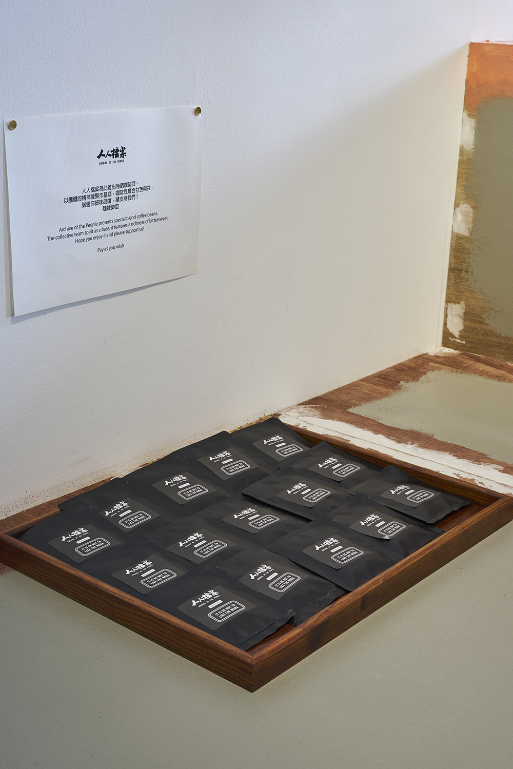 The elevated platform in the exhibition allows things to settle and others to get afloat, like a delicate layer of dense milk frothing over the coffee. A few sips of milk-flavoured air are taken before exploring the differences in the extracted coffee. In order to find a balance between the differences, Archive of People offers a special blend of coffee beans as a kind of spiritual bonding within the organisation. Members will each choose a particular type of coffee bean, blend it in different proportions, and have a coffee tasting session.